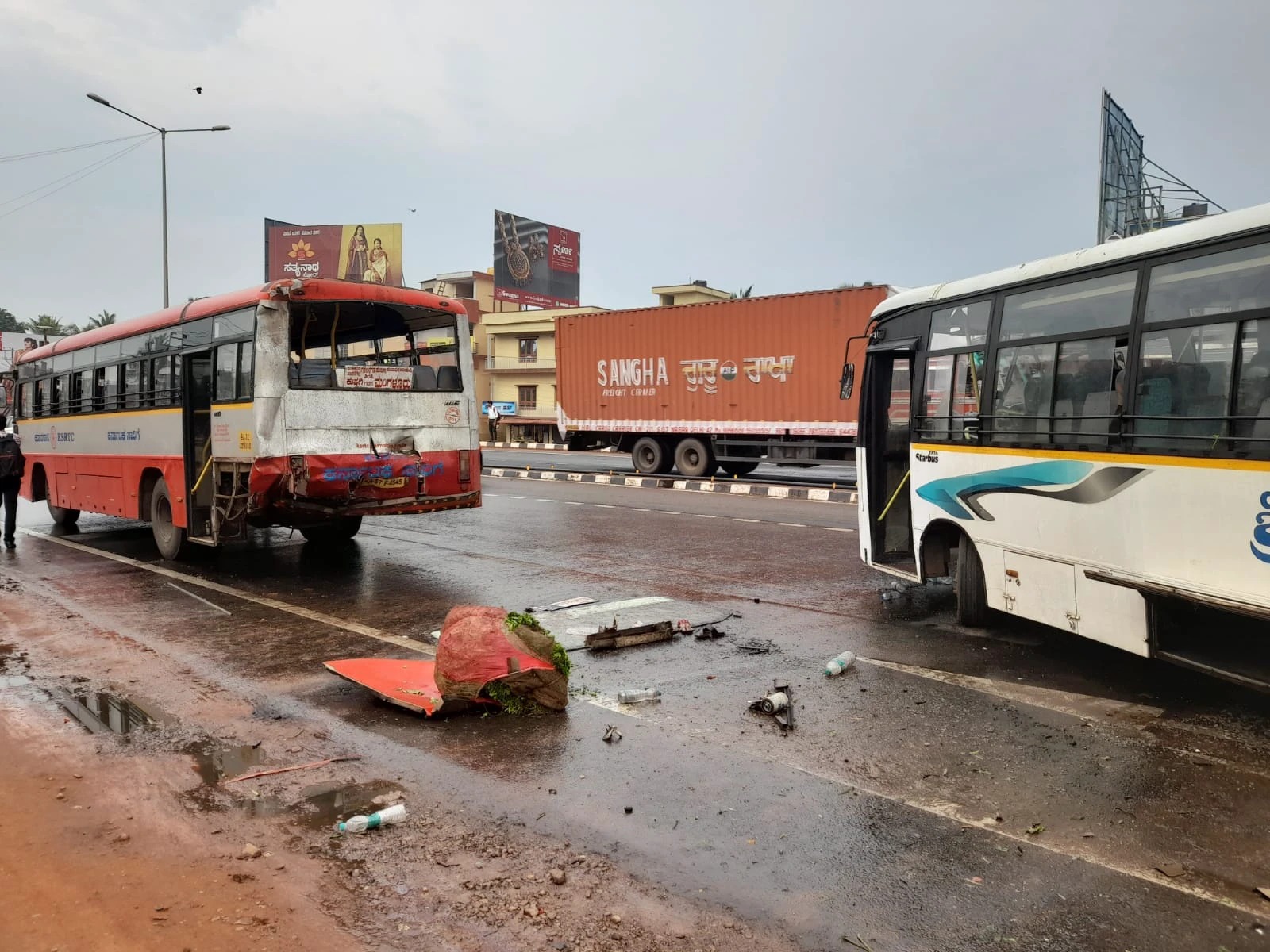 ಖಾಸಗಿ ಮತ್ತು ಸರ್ಕಾರಿ ಬಸ್ ಗಳ ನಡುವೆ ನಡೆದ ಅಪಘಾತದಲ್ಲಿ ಸುಮಾರು 30 ಮಂದಿ ಪ್ರಯಾಣಿಕರು ಗಾಯಗೊಂಡಿರುವ ಘಟನೆ ಸುರತ್ಕಲ್ನ ಮುಕ್ಕದಲ್ಲಿ ನಡೆದಿದೆ.