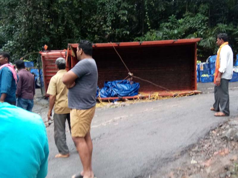 ಚಾರ್ಮಾಡಿ ಘಾಟ್ನ 6ನೇ ತಿರುವಿನಲ್ಲಿ ಚಾಲಕನ ನಿಯಂತ್ರಣ ತಪ್ಪಿ ಲಾರಿ ಪಲ್ಟಿಯಾದ ಘಟನೆ ಇಂದು ಬೆಳಗಿನ ಜಾವ ಐದು ಗಂಟೆಯ ಸುಮಾರಿಗೆ ನಡೆದಿದೆ.