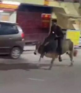ಇದೇ ರೀತಿ ಯುವಕನೊಬ್ಬ ಪ್ರಚಾರಕ್ಕಾಗಿ ಗೂಳಿ ಮೇಲೆ ಸವಾರಿ ಮಾಡಿ ಈಗ ಪೊಲೀಸರ ಅತಿಥಿಯಾಗಿದ್ದಾನೆ. ಹೌದು, ಉತ್ತರಾಖಂಡದ ರಿಷಿಕೇಶದ ತಪೋವನ ಎಂಬ ನಗರದಲ್ಲಿ ಮಧ್ಯರಾತ್ರಿ ಪಾನಮತ್ತನಾಗಿದ್ದ ಯುವಕನೊಬ್ಬ ಗೂಳಿಯೊಂದರ ಮೇಲೇರಿ ಸವಾರಿ ನಡೆಸಿದ್ದಾನೆ. ಈ ವಿಡಿಯೋ ಸಾಮಾಜಿಕ ಜಾಲತಾಣದಲ್ಲಿ ವೈರಲ್ ಆಗಿತ್ತು.