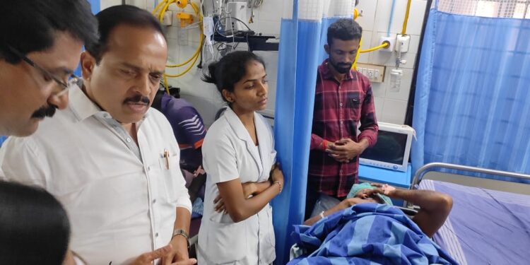 ಪುತ್ತೂರು: ಮರದಿಂದ ಬಿದ್ದು ಗಾಯಗೊಂಡು ಪುತ್ತೂರಿನ ಮಹಾವೀರ ಆಸ್ಪತ್ರೆಯಲ್ಲಿ ಚಿಕಿತ್ಸೆ ಪಡೆಯುತ್ತಿರುವ ಕಾಂಗ್ರೆಸ್ ಕಾರ್ಯಕರ್ತ ನಾಗರಾಜ್ ರನ್ನು ಭೇಟಿ ಮಾಡಿ ಶಾಸಕ ಅಶೋಕ್ ಕುಮಾರ್ ರೈ ಆರೋಗ್ಯ ವಿಚಾರಿಸಿದರು.