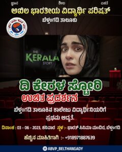 ಎಬಿವಿಪಿ ಬೆಳ್ತಂಗಡಿ ವತಿಯಿಂದ ‘ದಿ ಕೇರಳ ಸ್ಟೋರಿ’ ಜೂ 3 ರಂದು ಭಾರತ್ ಸಿನಿಮಾ ಮಂದಿರದಲ್ಲಿ ಉಚಿತ ಪ್ರದರ್ಶನ –ಕಹಳೆ ನ್ಯೂಸ್