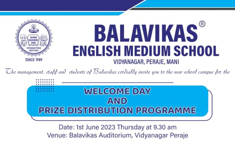 ನಾಳೆ ಬಾಲವಿಕಾಸ ಇಂಗ್ಲೀಷ್ ಮೀಡಿಯಂ ಸ್ಕೂಲ್ನಲ್ಲಿ ವೆಲ್ಕಂ ಡೇ ಹಾಗೂ ಬಹುಮಾನ ವಿತರಣಾ ಕಾರ್ಯಕ್ರಮ – ಕಹಳೆ ನ್ಯೂಸ್