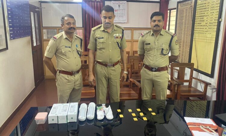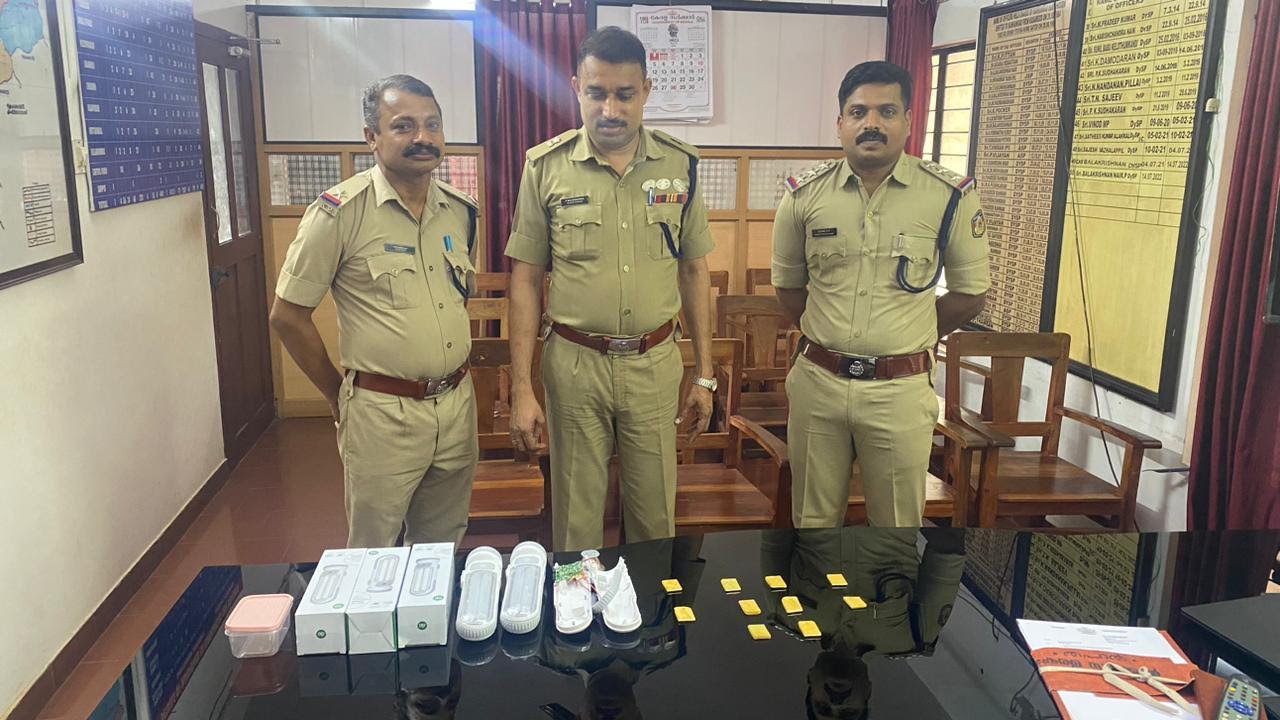 ಕಣ್ಣೂರು ವಿಮಾನ ನಿಲ್ದಾಣದಲ್ಲಿ ಇಳಿದು ಕಾರಿ ನಲ್ಲಿ ಬರುತ್ತಿದ್ದಾಗ ತಪಾಸಣೆ ನಡೆಸಲಾಗಿದ್ದು, ಬ್ಯಾಗ್ ನಲ್ಲಿ ಎಮರ್ಜೆನ್ಸಿ ಲೈಟ್ ನೊಳಗೆ ಬಚ್ಚಿಟ್ಟು ಚಿನ್ನ ಸಾಗಾಟ ಮಾಡಲಾಗಿದೆ ಎಂದು ಪೊಲೀಸರು ತಿಳಿಸಿದ್ದಾರೆ.