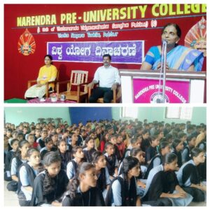 ನರೇಂದ್ರ ಪ.ಪೂ.ಕಾಲೇಜಿನಲ್ಲಿ ನಡೆದ ವಿಶ್ವ ಯೋಗ ದಿನಾಚರಣೆಯ ಕರ್ಯಕ್ರಮದಲ್ಲಿ ಆಸನಗಳೊಂದಿಗೆ ಯೋಗದ ಮಹತ್ವ ಎಂಬ ವಿಷಯದ ಕುರಿತಾಗಿ ವಿದ್ಯಾರ್ಥಿಗಳಿಗೆ ವಿಶೇಷ ಉಪನ್ಯಾಸವನ್ನು ನೀಡಿದರು.