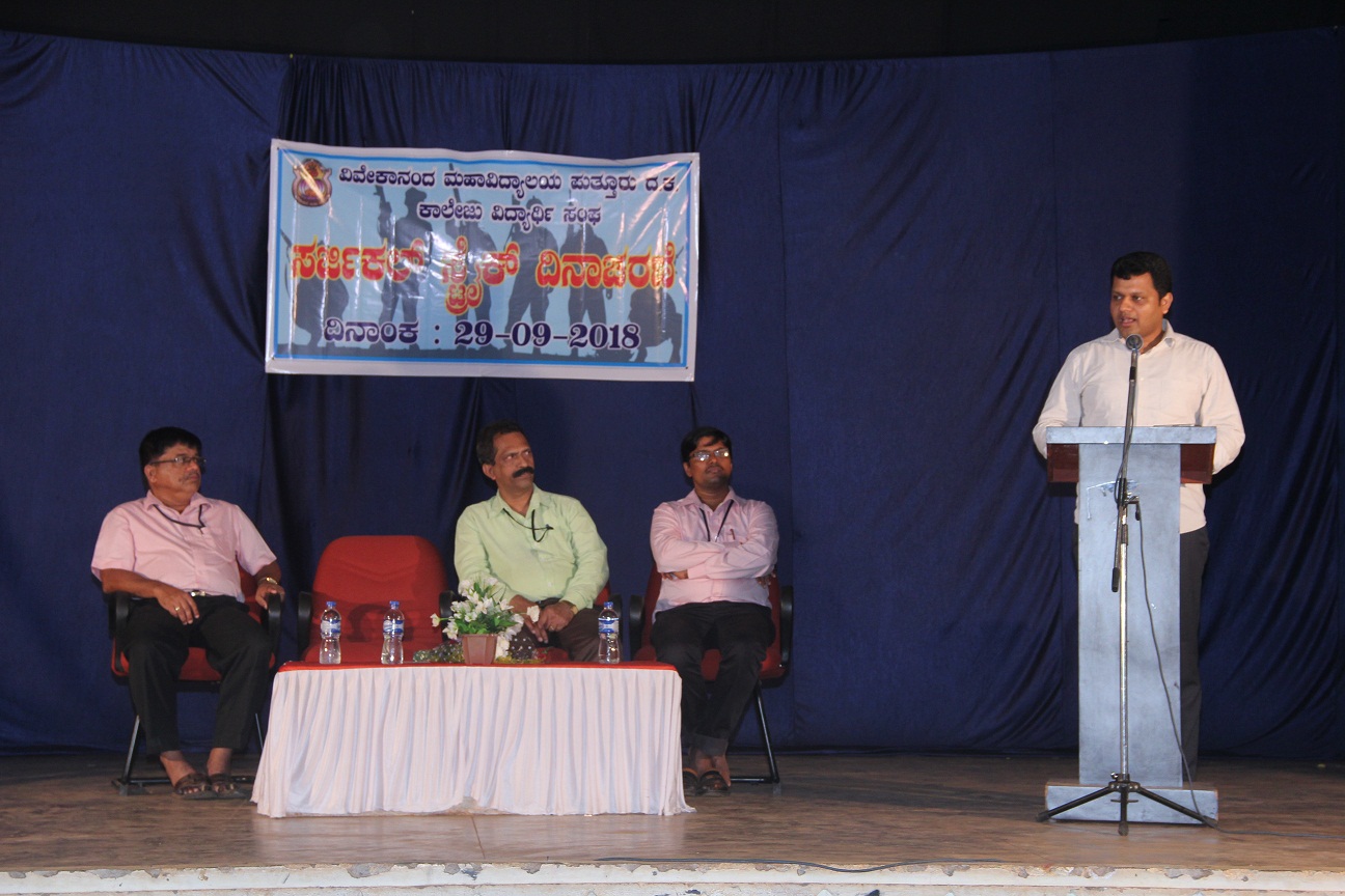 ಅವರು ಇಲ್ಲಿನ ವಿವೇಕಾನಂದ ಕಾಲೇಜಿನ ವಿದ್ಯಾರ್ಥಿ ಸಂಘದ ಆಶ್ರಯದಲ್ಲಿ ಶನಿವಾರ ಆಯೋಜಿಸಲಾದ ಸರ್ಜಿಕಲ್ ಸ್ಟ್ರೈಕ್ ದಿಣಾಚರಣೆ ಕಾರ್ಯಕ್ರಮದಲ್ಲಿ ಮುಖ್ಯ ಅತಿಥಿಯಾಗಿ ಭಾಗವಹಿಸಿ ಮಾತನಾಡಿದರು.