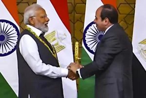 ಈಜಿಪ್ಟ್ ಪ್ರವಾಸದಲ್ಲಿರುವ ಪ್ರಧಾನಿ ಮೋದಿ ಅವರಿಗೆ ಇಂದು ಈಜಿಪ್ಟ್ ಅಧ್ಯಕ್ಷ ಅಬ್ದೆಲ್ ಫತ್ತಾಹ್ ಎಲ್-ಸಿಸಿ ಈಜಿಪ್ಟ್ನ ಅತ್ಯುನ್ನತ ರಾಜ್ಯ ಗೌರವವಾದ ‘ಆರ್ಡರ್ ಆಫ್ ದಿ ನೈಲ್’ ನೀಡಿ ಗೌರವಿಸಿದ್ದಾರೆ.