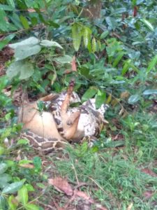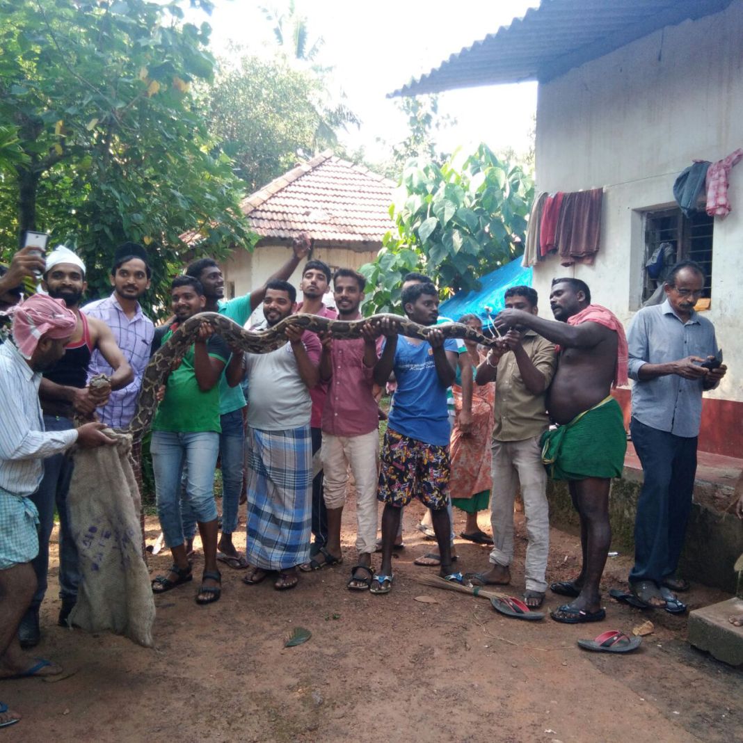 ಕಡಬ ತಾಲೂಕಿನ ಹಳೆ ಸ್ಟೇಷನ್ ಸಮೀಪದ ಬೆದ್ರಾಜೆಯಲ್ಲಿ ಬೃಹತ್ ಗಾತ್ರದ ಹೆಬ್ಬಾವು ನರಿಯೊಂದನ್ನು ಹಿಡಿದು ನುಂಗಲು ಯತ್ನಿಸಿತ್ತು. ಈ ವೇಳೆ ನರಿಯು ತಪ್ಪಿಸಿಕೊಳ್ಳಲಾಗದೆ ಮೃತಪಟ್ಟಿತ್ತು. ಸ್ಥಳೀಯ ವ್ಯಕ್ತಿ ಹಾಗೂ ಅರಣ್ಯ ಇಲಾಖೆಯ ಸಿಬ್ಬಂದಿಗಳ ಸಹಕಾರದೊಂದಿಗೆ ಬೃಹತ್ ಗಾತ್ರದ ಹಾವನ್ನು ಹಿಡಿದು ಕಾಡಿಗೆ ಬಿಟ್ಟಿದ್ದಾರೆ.