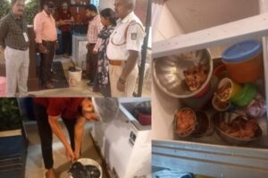 ಕೊಳೆತ ಮಾಂಸ, ಕಲ್ಲುಗಟ್ಟಿದ ಮೀನು, ಮಸಾಲೆ ಸಮೇತ ಬೂಸ್ಟ್ ಹಿಡಿದ ಮಾಂಸಾಹಾರ ಪತ್ತೆಯಾಗಿದೆ. ಇಂತಹ ಆಹಾರಗಳಿಂದ ತೀವ್ರ ಅನಾರೋಗ್ಯ ಕಾಣಿಸಿಕೊಳ್ಳಬಹುದು ಎಂದು ಅಧಿಕಾರಿಗಳು ತಿಳಿಸಿದ್ದು, ಮಾಲಕರಿಗೆ ದಂಡ ವಿಧಿಸಿ, ರೆಸ್ಟೋರೆಂಟ್ ಬಂದ್ ಮಾಡಿಸಿದ್ದಾರೆ. ದಾಳಿ ವೇಳೆ ತಹಶೀಲ್ದಾರ್ ಸಂತೋಷ್ ಕುಮಾರ್, ತಾಲೂಕು ಆರೋಗ್ಯಾಧಿಕಾರಿ ಡಾ. ಮಹೇಂದ್ರಪ್ಪ ಮತ್ತಿತರರು ಇದ್ದರು.
