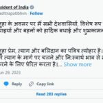 ಈ ಪವಿತ್ರ ಹಬ್ಬಕ್ಕೆ ಪ್ರಧಾನಿ ನರೇಂದ್ರ ಮೋದಿ, ರಾಷ್ಟ್ರಪತಿ ದ್ರೌಪದಿ ಮುರ್ಮು ಅವರು ಶುಭಾಶಯಗಳನ್ನು ತಿಳಿಸಿದ್ದಾರೆ.