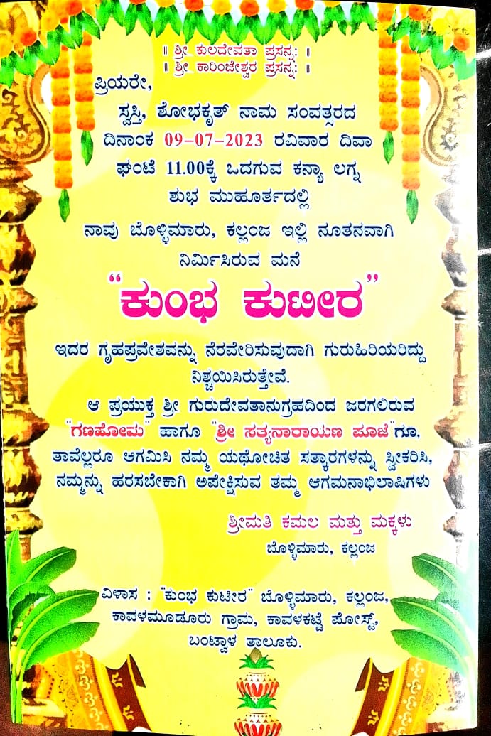 ಹಿರಿಯ ಪುತ್ರ ಪುಟ್ಟ ಉದ್ಯೋಗ ಮಾಡುತ್ತಾ ಕುಟುಂಬಕ್ಕೆ ಅದಾರ ಆಗುತ್ತಿದ್ದರು ವಿಧಿಯ ಕ್ರೂರ ಲೀಲೆ ಎಲ್ಲಿಂದ ಬಂತೋ ಗೊತ್ತಿಲ್ಲ ಕೆಲಸದಿಂದ ಬರುವಾಗ ಅಕ್ಷಿಡೆಂಟ್ ಆಗಿ ತನ್ನ ಕಾಲನ್ನು ಕಳೆದುಕೊಂಡರು ಇಂತಹ ಪರಿಸ್ಥಿತಿಯನ್ನು ಮನಗಂಡ ಸದಾಶಿವ ಕುಲಾಲ್ ವಗ್ಗ ನಾರಾಯಣ ಇಜ್ಜದೋಡಿ ವಿಶ್ವಹಿಂದುಪರಿಷದ್ ಕುಂಟಾಲಫಲ್ಕೆ ಘಟಕದ ಅಧ್ಯಕ್ಷರಾದ ಸತೀಶ್ ಕುಲಾಲ್ ಮದ್ವ ಇವರ ಮುಂಚೂಣಿಯಲ್ಲಿ ಹಾಗೂ ಉತ್ಸಾಹಿ ತರುಣ ವೃಂದ ವಗ್ಗ ಓಂಕಾರ ಪ್ರೆಂಡ್ಸ್ ಮಧ್ವ ಜೇಸಿಐ ಬಂಟ್ವಾಳ ವಿಶ್ವಹಿಂದೂಪರಿಷದ್ ಭಜರಂಗದಳ ಸಿಂತಾನಿಕಟ್ಟೆ ಶಾಖೆ ಪೂಪಾಡಿಕಟ್ಟೆ ಘಟಕ ಕುಂಟಾಲಫಲ್ಕೆ ಘಟಕ ವಗ್ಗ ಕುಲಾಲ ಸಂಘ ಬಂಟ್ವಾಳ ಕುಲಾಲ ಸುಧಾರಕ ಸಂಘ ಕುಲಾಲ ಯುವವೇದಿಕೆ ಸಿದ್ದಕಟ್ಟೆ ಕುಲಾಲ ಸಂಘ ಪುಟ್ಟಣ್ಣ ಕುಲಾಲ್ ಪ್ರತಿಷ್ಠಾನ ನಂದಾದೀಪ ಮಂಗಳೂರು ಸಿದ್ದಕಟ್ಟೆ ಕುಲಾಲ್ ಯುವವೇದಿಕೆ ಶರಭೆಶ್ವರ ಅಶೋಸಿಯೇಟ್ಸ್ ಕಾವೂರು ಮಂಗಳೂರು ಇವರ ಸಹಕಾರದೊಂದಿಗೆ ಕಮಲ ಅವರಿಗೆ ಸುಸಜ್ಜಿತ ಮನೆ ನಿರ್ಮಾಣ ಮಾಡುವಲ್ಲಿ ಸಹಕಾರಿಯಾಯಿತು ಇಂತಹ ಸಮಾಜ ಮುಖಿ ಕೆಲಸಗಳು ಇನ್ನಷ್ಟು ಬಡ ಕುಟುಂಬಗಳಿಗೆ ನೆರವು ಆಗಲಿ ಎಂಬುದೇ ನಮ್ಮೆಲ್ಲರ ಆಶಯ
