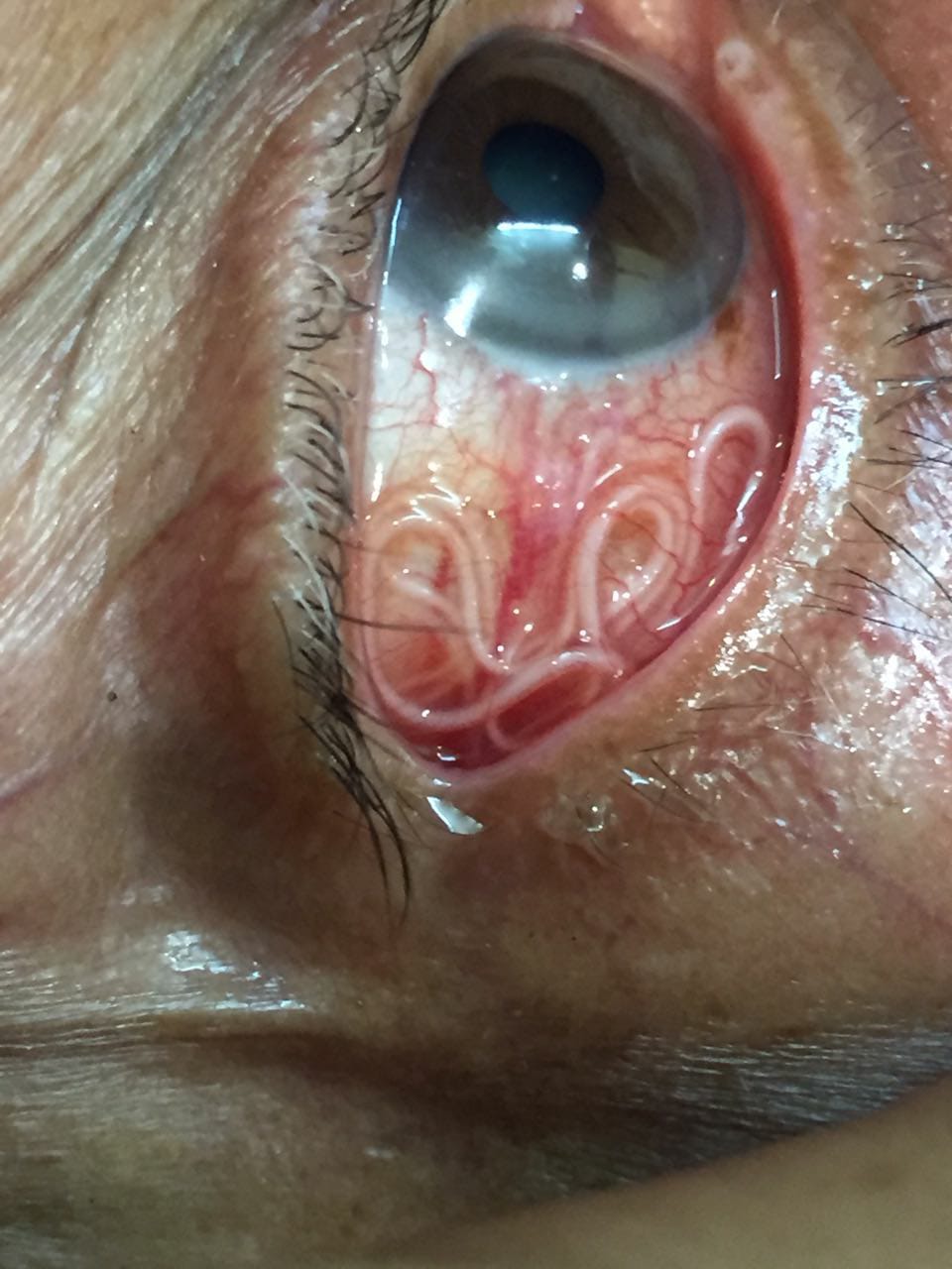 ಉಡುಪಿ ಜಿಲ್ಲೆಯ ಕುಂದಾಪುರ ತಾಲೂಕಿನ ನ್ಯೂ ಮೆಡಿಕಲ್ ಸೆಂಟರಿನ ನೇತ್ರ ತಜ್ಞ ಡಾ.ಶ್ರಿಕಾಂತ್ ಶೆಟ್ಟಿಯವರಿಗೆ ವ್ಯಕ್ತಿ ತಮ್ಮ ಕಣ್ಣನ್ನು ತೋರಿಸಿದ್ದಾರೆ. ವೈದ್ಯರು ಕಣ್ಣಿನ ತಪಾಸಣೆ ಮಾಡಿದಾಗ ಬಲಗಣ್ಣಿನ ಒಳಗೆ ಜೀವಂತವಾಗಿ ಹರಿದಾಡುತ್ತಿರುವ ಹುಳವನ್ನು ಪತ್ತೆಹಚ್ಚಿದ್ದಾರೆ.