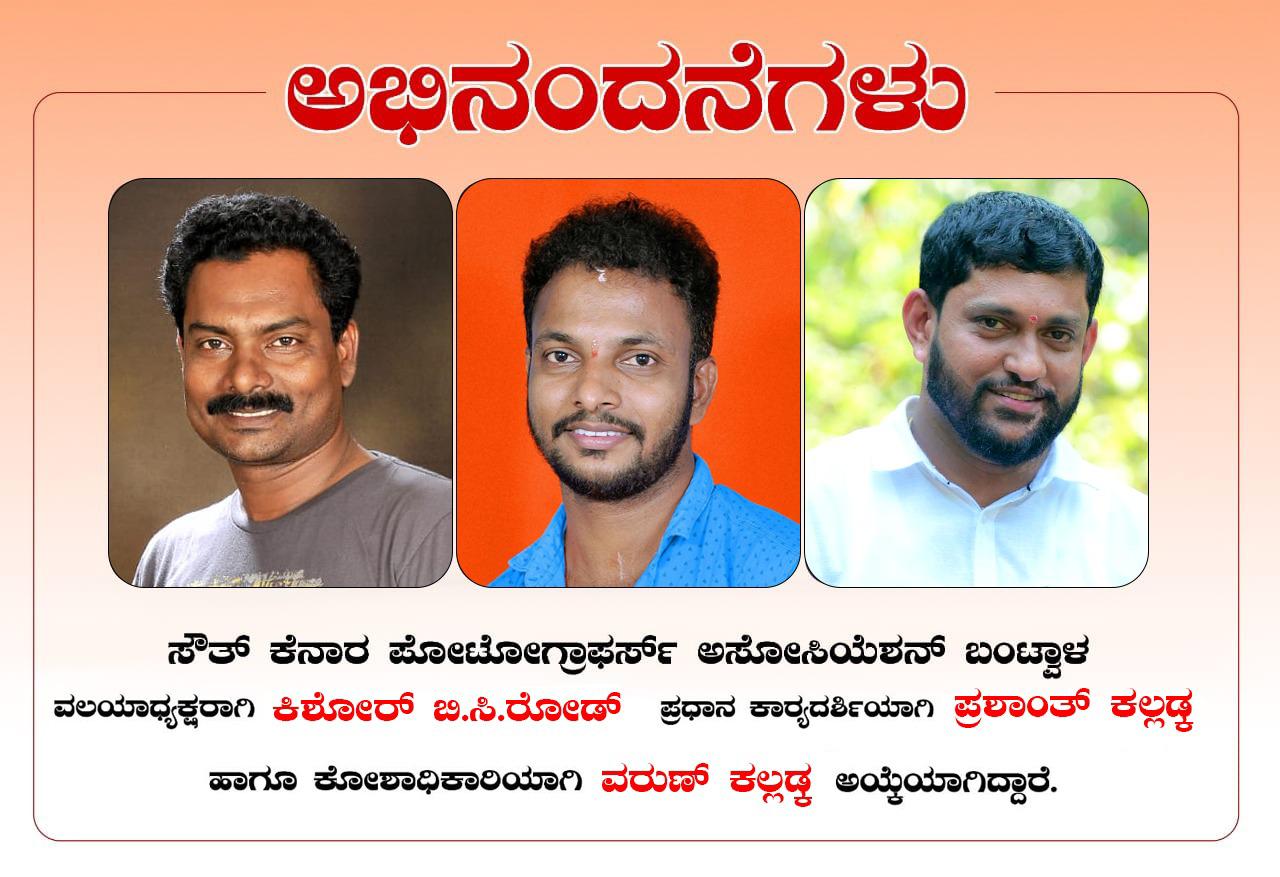 ಸೌತ್ ಕೆನರಾ ಫೋಟೋಗ್ರಾಫರ್ಸ್ ಅಸೋಸಿಯೇಷನ್ ಬಂಟ್ವಾಳ ವಲಯದ ಅಧ್ಯಕ್ಷರಾಗಿ ಕಿಶೋರ್ ಬಿ.ಸಿ.ರೋಡ್ ಆಯ್ಕೆ – ಕಹಳೆ ನ್ಯೂಸ್