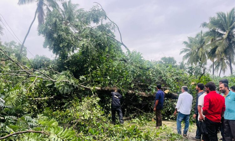 ಬಂಟ್ವಾಳ: ನಿನ್ನೆ ರಾತ್ರಿಯಿಂದಲೇ ಕರಾವಳಿಯಲ್ಲಿ ಗಾಳಿ ಸಹಿತ ಧಾರಾಕಾರ ಮಳೆಯಾಗುತ್ತಿದೆ. ಇನ್ನು ಇಂದು ಬೆಳಗ್ಗೆ ಸುರಿದ ಬಾರಿ ಗಾಳಿ ಮಳೆಗೆ ಮಾಣಿ ಪುತ್ತೂರು ಮಾರ್ಗದ ನೆಟ್ಲಮುಡ್ನೂರು ಗ್ರಾಮ ಪಂಚಾಯತ್ ವ್ಯಾಪ್ತಿಯ ನೇರಳಕಟ್ಟೆ ಬಳಿ ಬೃಹತ್ ಮರವೊಂದು ಧರೆಗುರುಳಿದಿದೆ. ಮರವು ದಾರಿಗೆ ಅಡ್ಡಲಾಗಿ ಬಿದ್ದಿದ್ದು, ವಾಹನ ಸಂಚಾರಕ್ಕೆ ಅಡಚಣೆ ಉಂಟಾಗಿದೆ.