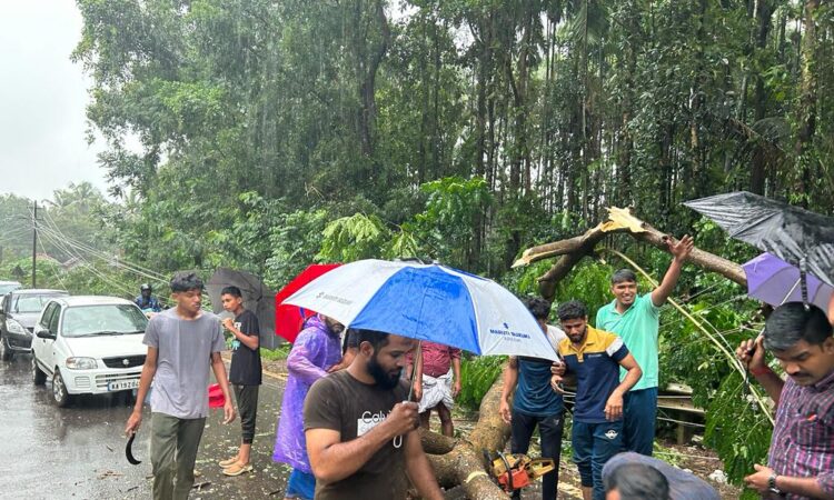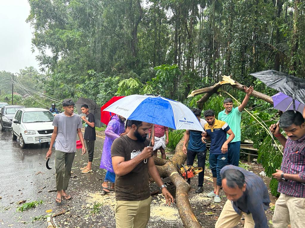 ವಿಟ್ಲ: ಮಾಣಿ – ಮೈಸೂರು ಹೆದ್ದಾರಿಯ ಮಿತ್ತೂರು ಬಳಿಯ ಕುಕ್ಕೆರಬೆಟ್ಟು ಎಂಬಲ್ಲಿ ಮರಬಿದ್ದ ಹಿನ್ನೆಲೆಯಲ್ಲಿ ರಸ್ತೆ ಸಂಚಾರಕ್ಕೆ ಅಲ್ಪ ಹೊತ್ತು ತೊಡಕಾಗಿತ್ತು. ಈ ಬಗ್ಗೆ ಮಾಹಿತಿ ಅರಿತ ಆಸೀಪ್ ಕೆ.ಎಸ್. ಹಾಗೂ ಅಬ್ದುಲ್ ಜಬ್ಬಾರ್ ಅರ್ಶದಿರವರ ನೇತೃತ್ವದ ಎಸ್.ಕೆ.ಎಸ್.ಎಸ್.ಎಪ್ ಸ್ವಯಂ ಸೇವಾ ವಿಭಾಗದ ವಿಖಾಯ ತಂಡದ ಕಾರ್ಯಕರ್ತರು ಸಾರ್ವಜನಿಕರೊಂದಿಗೆ ಸೇರಿಕೊಂಡು ಮರತೆರವು ಕಾರ್ಯ ನಡೆಸಿದ್ದಾರೆ.ಆ ಬಳಿಕ ವಾಹನ ಸಂಚಾರ ಆರಂಭವಾಯಿತು.