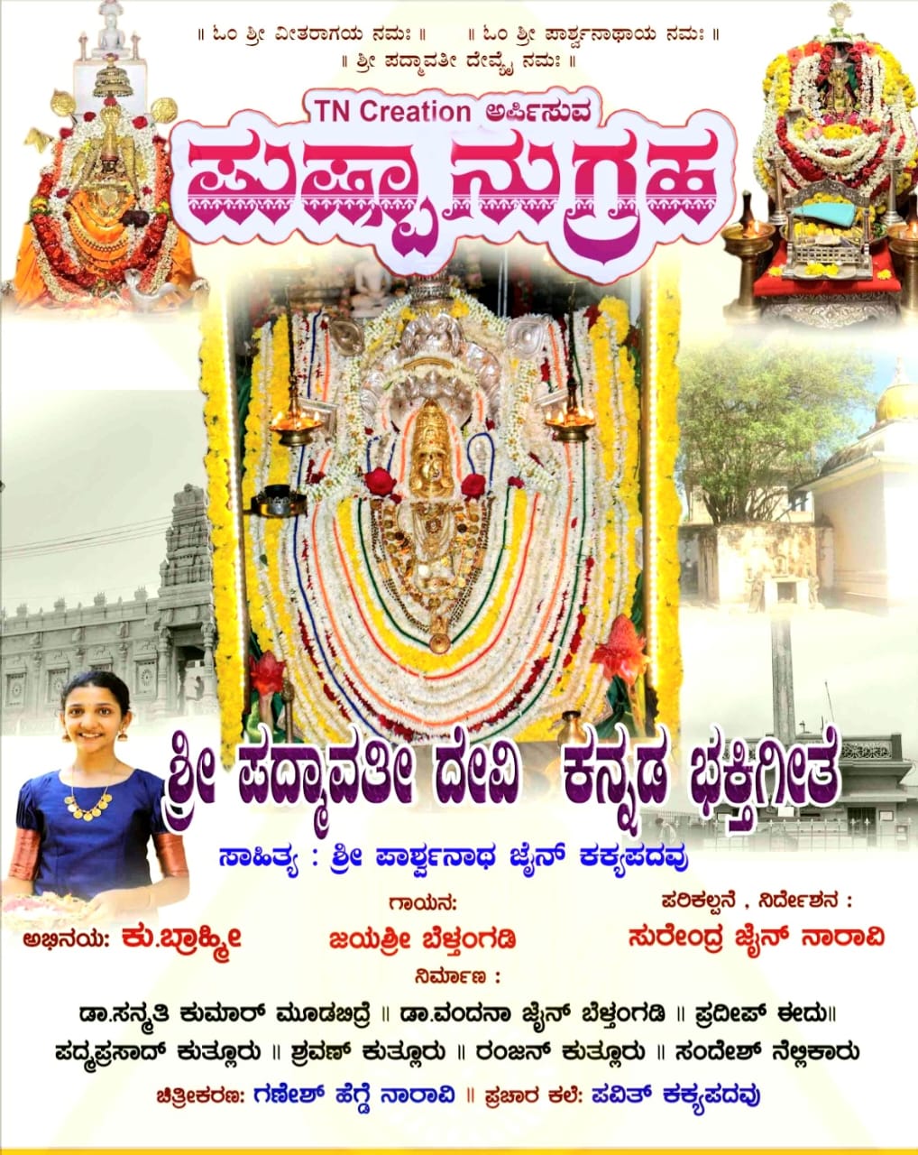 ಕರ್ನಾಟಕದ ವಿವಿಧ ಭಾಗಗಳಲ್ಲಿರುವ ಜಿನ ಬಸದಿಗಳಿಂದ ಸಂಗ್ರಹಿಸಿರುವ ಶ್ರೀ ಪದ್ಮಾವತೀ ಅಮ್ಮನವರ ಸಚಿತ್ರ ಮತ್ತು ದೃಶ್ಯ ಸಂಯೋಜನೆಯ ಮೊತ್ತ ಮೊದಲ ವಿನೂತನ ಭಕ್ತಿಗೀತೆಯೇ ಈ ಪುಷ್ಟಾನುಗ್ರಹ. ಜಯಶ್ರೀ ಬೆಳ್ತಂಗಡಿ ಗೀತೆಗೆ ಧ್ವನಿಯಾಗಿದ್ದು ಕು. ಬ್ರಾಹ್ಮೀ ಜೈನ್ ಅಭಿನಯಿಸಿದ್ದಾರೆ.