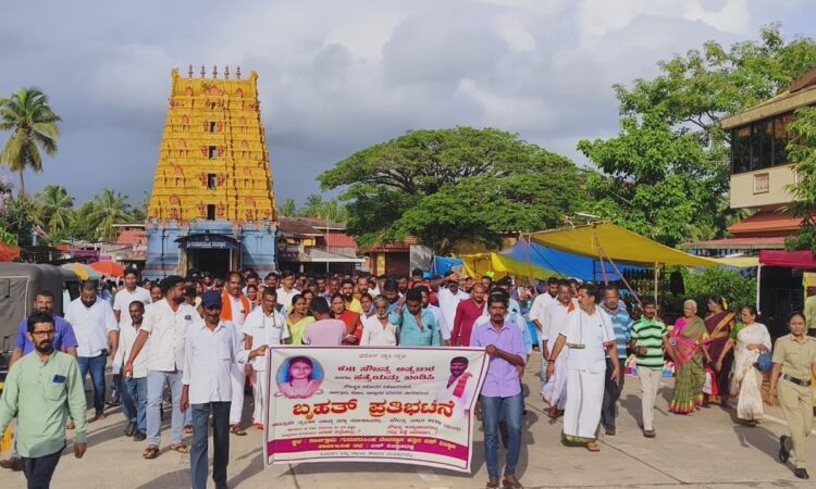 ಸೌಜನ್ಯಾ ಅತ್ಯಾಚಾರ ಮತ್ತು ಕೊಲೆ ಪ್ರಕರಣದ ಆರೋಪಿಗಳನ್ನು ಬಂಧಿಸಿ ನೊಂದ ಕುಟುಂಬಕ್ಕೆ ಸೂಕ್ತ ನ್ಯಾಯ ಒದಗಿಸಲು ಆಗ್ರಹಿಸಿ ಆ. 19 ರಂದು ಶನಿವಾರ ಸಾಲಿಗ್ರಾಮ ರಥಬೀದಿಯಿಂದ ಬಸ್ಸು ನಿಲ್ದಾಣ ತನಕ ಕಾಲ್ನಡಿಗೆ ಜಾಥ ಹಾಗೂ ಬೃಹತ್ ಪ್ರತಿಭಟನಾ ಸಭೆ ನಡೆಯಿತು.