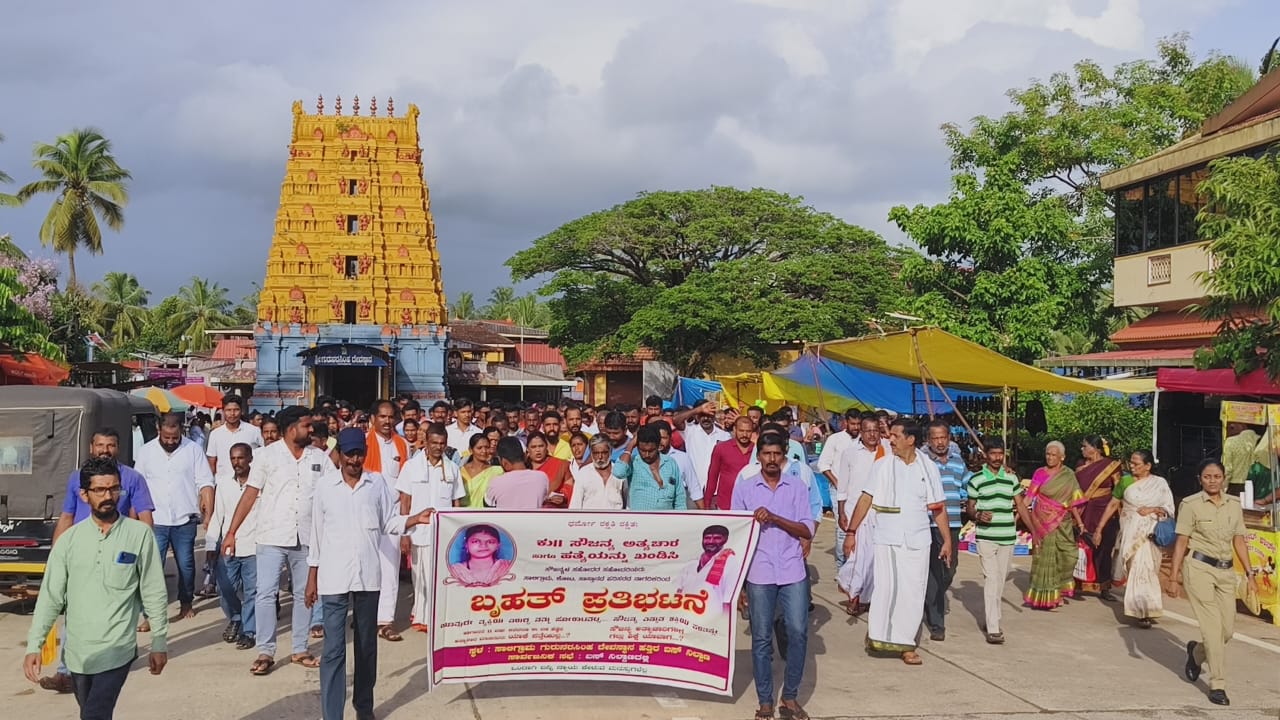 ಸೌಜನ್ಯಾ ಅತ್ಯಾಚಾರ ಮತ್ತು ಕೊಲೆ ಪ್ರಕರಣದ ಆರೋಪಿಗಳನ್ನು ಬಂಧಿಸಿ ನೊಂದ ಕುಟುಂಬಕ್ಕೆ ಸೂಕ್ತ ನ್ಯಾಯ ಒದಗಿಸಲು ಆಗ್ರಹಿಸಿ ಆ. 19 ರಂದು ಶನಿವಾರ ಸಾಲಿಗ್ರಾಮ ರಥಬೀದಿಯಿಂದ ಬಸ್ಸು ನಿಲ್ದಾಣ ತನಕ ಕಾಲ್ನಡಿಗೆ ಜಾಥ ಹಾಗೂ ಬೃಹತ್ ಪ್ರತಿಭಟನಾ ಸಭೆ ನಡೆಯಿತು.