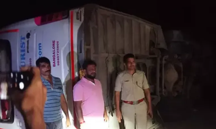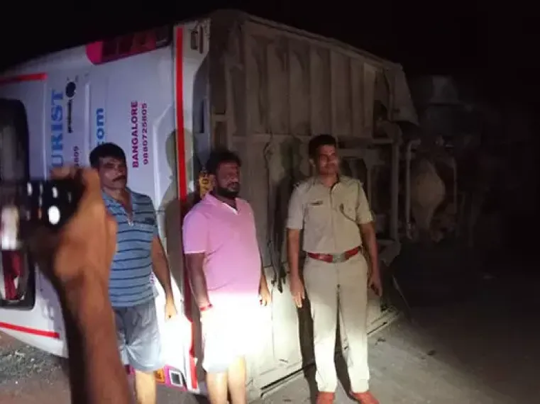ರಾಜ್ಯ ಹೆದ್ದಾರಿ 70ರ ಮೂಡಬಿದ್ರಿ ಬೆಳ್ತಂಗಡಿ ರಸ್ತೆಯ ವೇಣೂರು ಸಮೀಪ ಗಾಂಧಿನಗರದಲ್ಲಿ ಮೂಡಬಿದ್ರಿಯಿಂದ ಬೆಂಗಳೂರಿಗೆ ಹೊರಟಿದ್ದ ಖಾಸಗಿ ಬಸ್ ಚಾಲಕನ ನಿಯಂತ್ರಣ ತಪ್ಪಿ ಪಲ್ಟಿಯಾಗಿದೆ.