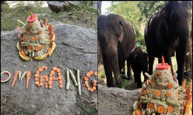 ಓಂ ಗಂಗಾ ಜನ್ಮದಿನಕ್ಕೆ ತರಕಾರಿ ಮತ್ತು ಹಣ್ಣುಗಳ ಕೇಕ್: ಇಲ್ಲಿನ ಸಿಬ್ಬಂದಿ ಆನೆ ಮರಿ ಜನ್ಮದಿನಕ್ಕಾಗಿ ಅನ್ನದ ಪೊಂಗಲ್, ಬೆಲ್ಲ, ತೆಂಗಿನಕಾಯಿ, ಕ್ಯಾರೆಟ್, ಬಾಳೆಹಣ್ಣು, ಕಬ್ಬು ಮತ್ತು ಕಲ್ಲಂಗಡಿಗಳಲ್ಲಿ ವಿಶೇಷವಾಗಿ ಕೇಕ್ ತಯಾರು ಮಾಡಿದ್ದರು. ಕ್ಯಾರೆಟ್, ಕಬ್ಬು, ಕಲ್ಲಂಗAಡಿಯಲ್ಲೇ ಓಂ ಗಂಗಾ ಎಂದು ಕೇಕ್ ಮುಂದೆ ಬರೆದಿದ್ದರು. ಆನೆ ಮರಿಗೆ ಈ ವಿಶೇಷವಾದ ಕೇಕ್ ನೀಡುವ ಮೂಲಕ ಸಿಬ್ಬಂದಿಯು ಜನ್ಮದಿನದ ಶುಭಾಶಯ ಕೋರಿದರು.