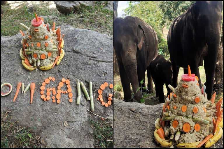 ಓಂ ಗಂಗಾ ಜನ್ಮದಿನಕ್ಕೆ ತರಕಾರಿ ಮತ್ತು ಹಣ್ಣುಗಳ ಕೇಕ್: ಇಲ್ಲಿನ ಸಿಬ್ಬಂದಿ ಆನೆ ಮರಿ ಜನ್ಮದಿನಕ್ಕಾಗಿ ಅನ್ನದ ಪೊಂಗಲ್, ಬೆಲ್ಲ, ತೆಂಗಿನಕಾಯಿ, ಕ್ಯಾರೆಟ್, ಬಾಳೆಹಣ್ಣು, ಕಬ್ಬು ಮತ್ತು ಕಲ್ಲಂಗಡಿಗಳಲ್ಲಿ ವಿಶೇಷವಾಗಿ ಕೇಕ್ ತಯಾರು ಮಾಡಿದ್ದರು. ಕ್ಯಾರೆಟ್, ಕಬ್ಬು, ಕಲ್ಲಂಗAಡಿಯಲ್ಲೇ ಓಂ ಗಂಗಾ ಎಂದು ಕೇಕ್ ಮುಂದೆ ಬರೆದಿದ್ದರು. ಆನೆ ಮರಿಗೆ ಈ ವಿಶೇಷವಾದ ಕೇಕ್ ನೀಡುವ ಮೂಲಕ ಸಿಬ್ಬಂದಿಯು ಜನ್ಮದಿನದ ಶುಭಾಶಯ ಕೋರಿದರು.
