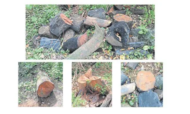 ಶಿಬಾಜೆ ಸೆಕ್ಷನ್ ವ್ಯಾಪ್ತಿಯಲ್ಲಿ ಇರುವ ನೀರಾನ ಮತ್ತು ಕುರುಂಬು ಮಧ್ಯೆ ಕೇವಲ 10 ಮೀಟರ್ ಅಂತರದಲ್ಲಿ, ಮುಖ್ಯ ರಸ್ತೆಗೆ ಕಾಣುವಂತಿದ್ದ ಮತ್ತು ಅರಣ್ಯ ಇಲಾಖಾ ಸಿಬ್ಬಂದಿಯೋರ್ವರ ಮನೆಯಿಂದ ಕೂಗಲತೆ ದೂರದಲ್ಲಿ ಬೃಹತ್ ಗಾತ್ರದ 2 ಬೇಂಗದ ಮರಗಳನ್ನು ಕಡಿದು ಹಾಕಿ 8 ಅಡಿ ಉದ್ದದ ದಿಮ್ಮಿಗಳನ್ನಾಗಿ ಮಾಡಿ ಸಾಗಾಟ ಮಾಡಿರುವ ಕೃತ್ಯದ ಕುರುಹು ಕಂಡು ಬಂದಿದೆ.