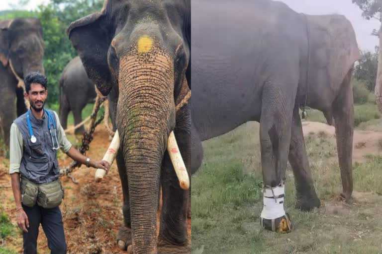 ಮೈಸೂರು : ಪಾದಕ್ಕೆ ಗಾಯವಾಗಿ ನಡೆಯಲಾಗದೇ ಒದ್ದಾಡುತ್ತಿದ್ದ ಆನೆಗೆ ಪಶುವೈದ್ಯರೊಬ್ಬರು ಪಾದರಕ್ಷೆ ತಯಾರಿಸಿ ಎಲ್ಲರ ಗಮನ ಸೆಳೆದಿದ್ದಾರೆ.