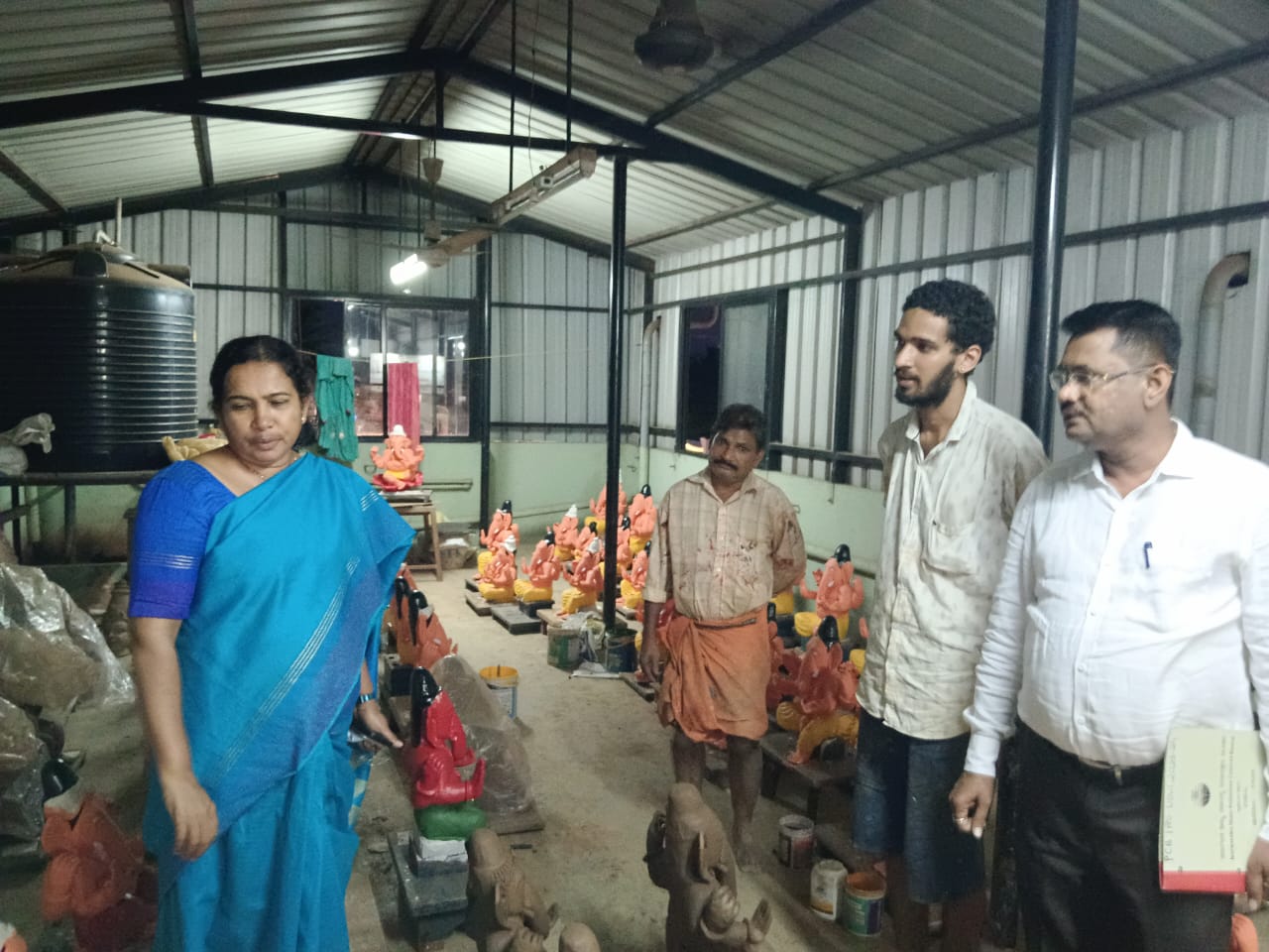 ಇದೇ ಸಂದರ್ಭದಲ್ಲಿ ಗಣಪತಿ ವಿಗ್ರಹ ತಯಾರಿಕರೊಂದಿಗೆ , ವಿಗ್ರಹ ತಯಾರಿಕೆಗೆ ಬಳಸುತ್ತಿರುವ ವಸ್ತುಗಳು ಹಾಗೂ ಬಣ್ಣದ ಲೇಪನದ ಬಗ್ಗೆ ಮಾಹಿತಿ ಪಡೆದು ಮಾತನಾಡಿ ಬಣ್ಣವಿಲ್ಲದ ವಿಗ್ರಹಗಳ ತಯಾರಿಕೆಗೆ ಹೆಚ್ಚು ಒತ್ತು ನೀಡಬೇಕು ಎಂದರು.