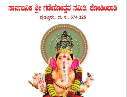 ಸಾರ್ವಜನಿಕ ಶ್ರೀ ಗಣೇಶೋತ್ಸವ ಸಮಿತಿ ಕೋಡಿಂಬಾಡಿ ವತಿಯಿಂದ, ಸೆ.19 ರಿಂದ 21ರವರೆಗೆ ಅಶ್ವತ್ಥಕಟ್ಟೆ ವಠಾರದಲ್ಲಿ 40ನೇ ವರ್ಷದ ಸಾರ್ವಜನಿಕ ಶ್ರೀ ಗಣೇಶೋತ್ಸವ ನಡೆಯಲಿದೆ.