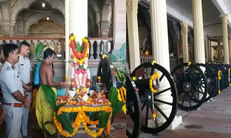 ದಸರಾ ಜಂಬೂಸವಾರಿಯ ದಿನ ಕುಶಾಲತೋಪು ಸಿಡಿಸುವ ಫಿರಂಗಿಗಳಿಗೆ ಅರಮನೆ ಅಂಗಳದಲ್ಲಿ ಸಾಂಪ್ರದಾಯಿಕ ಪೂಜೆ – ಕಹಳೆ ನ್ಯೂಸ್
