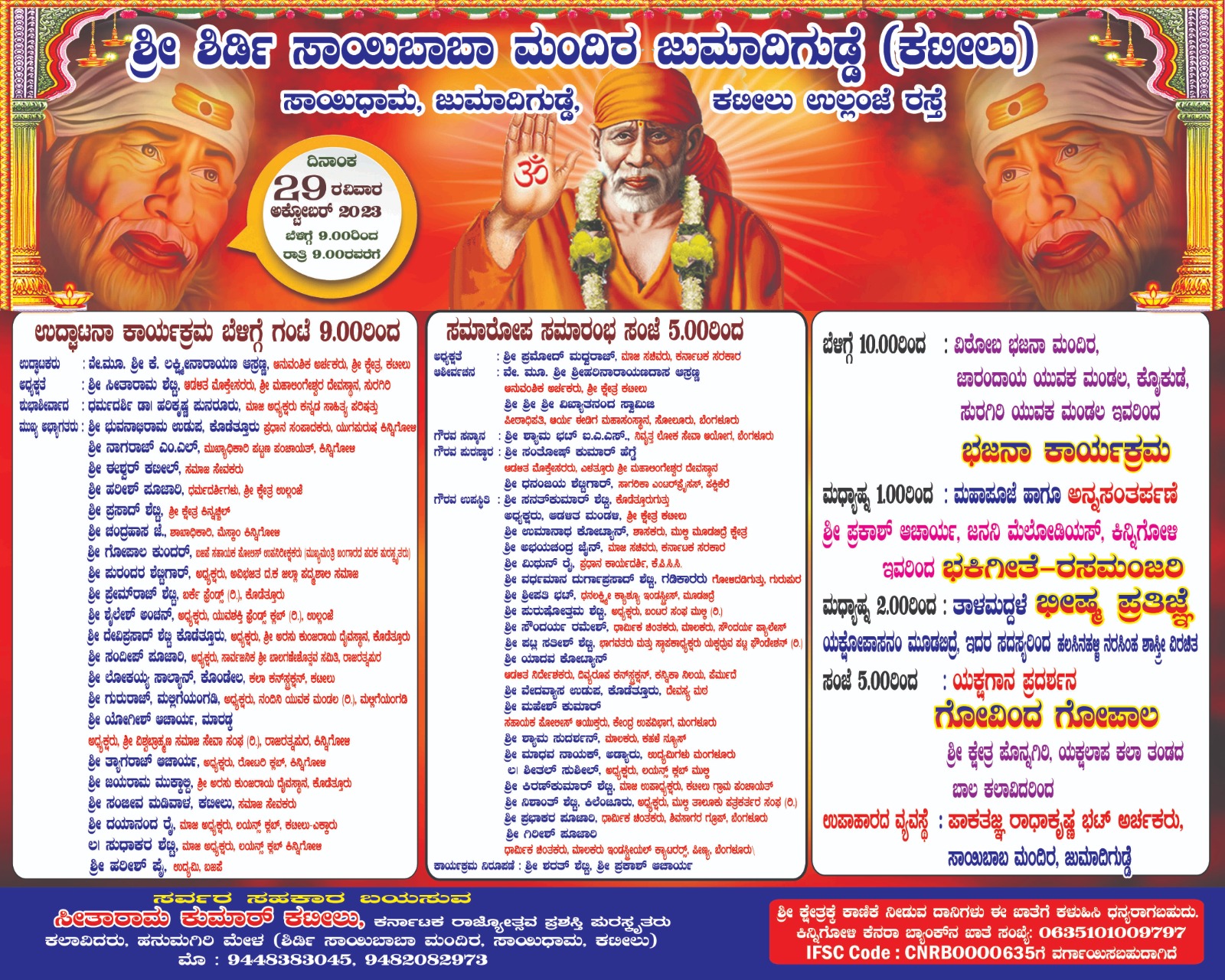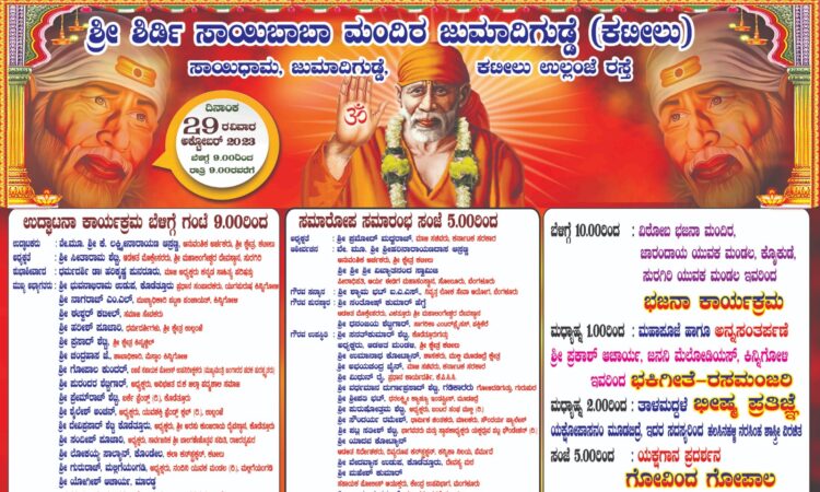 ಕಟೀಲು : ಅ.29ರಂದು ಜುಮಾದಿಗುಡ್ಡೆಯಲ್ಲಿ ಶ್ರೀ ಶಿರ್ಡಿ ಸಾಯಿಬಾಬಾ ಮಂದಿರ ಉದ್ಘಾಟನೆಗೊಳ್ಳಲಿದೆ.