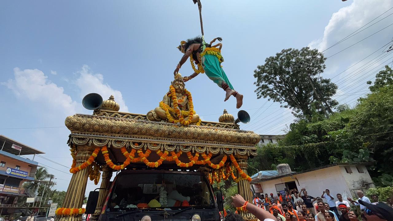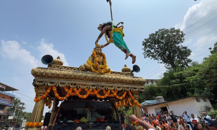 ಬಜರಂಗದಳದ ಶೌರ್ಯ ಜಾಗರಣ ರಥಯಾತ್ರೆಯನ್ನ ಆಂಜನೇಯ ಸ್ವಾಗತಿಸಿದ್ದು ವಿನೂತನವಾಗಿತ್ತು. ಆಂಜನೇಯ ವೇಷಧಾರಿ ಕ್ರೇನ್ ಮೂಲಕ ಹಾರುತ್ತ ಬಂದು ಶೌರ್ಯ ರಥಯಾತ್ರೆಯಲ್ಲಿದ್ದ ಬಜರಂಗಿಯ ಮೂರ್ತಿಗೆ ಮಾಲಾರ್ಪಣೆ ಮಾಡಿದ್ದು ವಿಶೇಷ ಆಕರ್ಷಣೆಯಾಗಿತ್ತು.