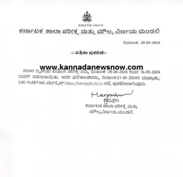 ಬೆಂಗಳೂರು : ದ್ವಿತೀಯ ಪಿಯುಸಿ ಇಂದು ಮಧ್ಯಾಹ್ನ 3 ಗಂಟೆಗೆ ದ್ವಿತೀಯ ಪಿಯುಸಿ-2 ಪರೀಕ್ಷೆ ಫಲಿತಾಂಶ ಪ್ರಕಟಿಸಲಾಗುತ್ತದೆ. ಇಲಾಖೆಯು ವೆಬ್‌ ಸೈಟ್‌ ನಲ್ಲಿ https://karresults.nic.in ಫಲಿತಾಂಶ ಲಭ್ಯವಾಗಲಿದೆ. ಈ ಸಂಬಂಧ ಕರ್ನಾಟಕ ಶಾಲಾ ಪರೀಕ್ಷೆ ಮತ್ತು ಮೌಲ್ಯ ನಿರ್ಣಯ ಮಂಡಲಿ ಮಾಹಿತಿ ಹಂಚಿಕೊಂಡಿದ್ದು, 2024ರ ದ್ವಿತೀಯ ಪಿಯುಸಿ ಪರೀಕ್ಷೆ-2ನ್ನು ದಿನಾಂಕ: 29-04-2024 ರಿಂದ 16-05-2024 ರವರೆಗೆ ನಡೆಸಲಾಯಿತು, ಇದರ ಫಲಿತಾಂಶವನ್ನು ದಿನಾಂಕ:21-05-2024ರ ಮಧ್ಯಾಹ್ನ: 3.00 ಗಂಟೆಗೆ NIC ವೆಬ್‌ಸೈಟ್ https://karresults.nic.in...