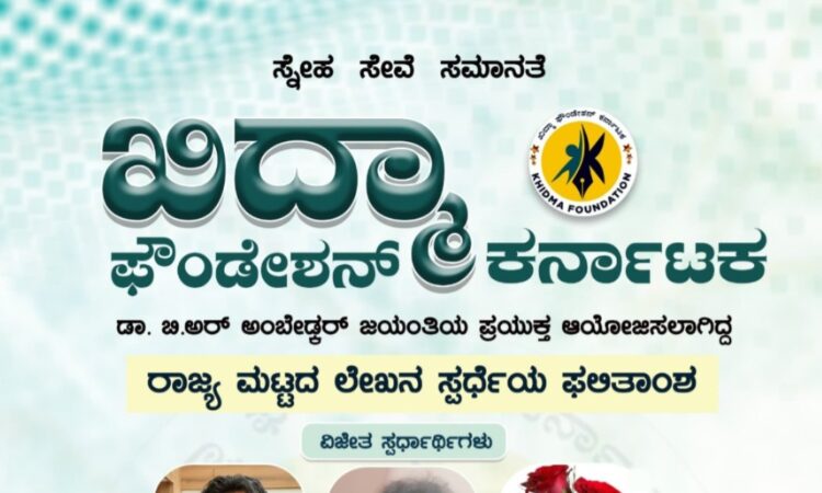 ಸಂವಿಧಾನ ಶಿಲ್ಪಿ ಬಾಬಾಸಾಹೇಬ ಅಂಬೇಡ್ಕರ್ ಅವರ ಜಯಂತಿಯ ಪ್ರಯುಕ್ತ ಖಿದ್ಮಾ ಫೌಂಡೇಶನ್ ಕರ್ನಾಟಕ ಆಯೋಜಿಸಲಾಗಿದ್ದ ರಾಜ್ಯ ಮಟ್ಟದ ಲೇಖನ ಸ್ಪರ್ಧೆಯ ಫಲಿತಾಂಶ ಪ್ರಕಟಣೆಯಾಗಿದೆ. ಪ್ರಥಮ ಹಿರಿಯ ವೈದ್ಯ ಅಧಿಕಾರಿ ಡಾ. ಸುರೇಶ್ ನೆಗಳಗುಳಿ, ದ್ವಿತೀಯ: ಶ್ರೀಮತಿ ಸ್ವಪ್ನ ಆರ್.ಎ ಹಾಗೂ ತೃತೀಯ ಸ್ಥಾನ ಡಾ. ಪೂರ್ಣಿಮಾ ಧಾಮಣ್ಣವರ ಪಡೆದುಕೊಂಡರೆ ತೀರ್ಪುಗಾರರಿಂದ ಝುಲೇಖ ಮಮ್ತಾಝ್, ಕು. ಜ್ಯೋತಿ ಆನಂದ ತಂದುಕೊಂಡರು, ರೇಣುಖಾ ಬಂಗಾರಪ್ಪನವರ, ಪಲ್ಲವಿ ಎಂ.ಓ ಹಾಗೂ ಪ್ರತಿಭಾ ಬಿ ತಲ್ಲೂರ...