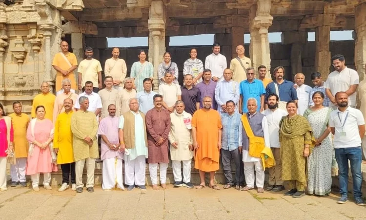 ಹೊಸಪೇಟೆ  : ರಾಷ್ಟ್ರೀಯ ಸ್ವಯಂಸೇವಕ ಸಂಘದ (ಆರ್‌ಎಸ್‌ಎಸ್) ಧ್ಯೇಯ, ಉದ್ದೇಶಗಳ ಕುರಿತು 23 ದೇಶಗಳಲ್ಲಿ ಪ್ರಚಾರದಲ್ಲಿ ತೊಡಗಿರುವ ಪ್ರಚಾರಕರು, ಸರಕಾರ್ಯವಾಹ ದತ್ತಾತ್ರೇಯ ಹೊಸಬಾಳೆ ಅವರ ನೇತೃತ್ವದಲ್ಲಿ ಬುಧವಾರ ಹಂಪಿಯ ವಿಜಯ ವಿಠ್ಠಲ ದೇವಸ್ಥಾನಕ್ಕೆ ಭೇಟಿ ನೀಡಿದರು. ಹಂಪಿ ಸಮೀಪದ ಆನೆಗೊಂದಿಯಲ್ಲಿ ನಡೆಯುವ ಮೂರು ದಿನಗಳ ಚಿಂತನ ಮಂಥನ ಸಭೆಯಲ್ಲಿ ಪಾಲ್ಗೊಳ್ಳಲು ಬಂದಿರುವ ಅವರು, ಸಭೆಯ ನಡುವೆ ಬಿಡುವು ಮಾಡಿಕೊಂಡು ಹಂಪಿಗೆ ಭೇಟಿ ನೀಡಿದರು. 'ಅಮೆರಿಕ, ಕೆನಡಾ, ದುಬೈ, ನೈಜೀರಿಯಾ, ಮ್ಯಾನ್ಮಾರ್ ಸೇರಿ...