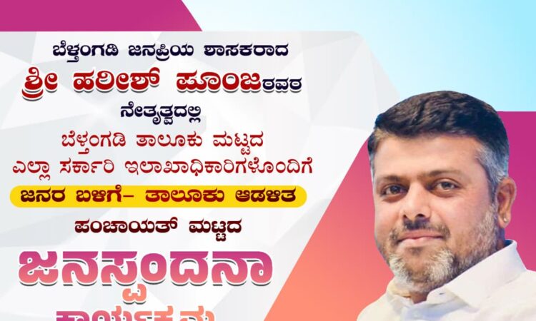 ಬೆಳ್ತಂಗಡಿ ಶಾಸಕರಾದ ಶ್ರೀ ಹರೀಶ್ ಪೂಂಜ ರವರ ನೇತೃತ್ವದಲ್ಲಿ ಬೆಳ್ತಂಗಡಿ ತಾಲೂಕು ಮಟ್ಟದ ಎಲ್ಲಾ ಸರ್ಕಾರಿ ಇಲಾಖಾಧಿಕಾರಿಗಳೊಂದಿಗೆ ಡಿ.26ದಂದು ಜನಸ್ಪಂದನಾ ಕಾರ್ಯಕ್ರಮ -ಕಹಳೆ ನ್ಯೂಸ್