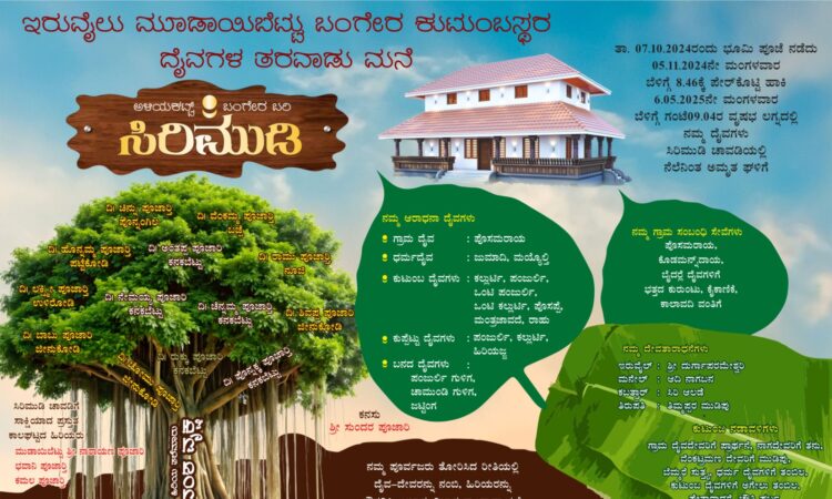 ತುಳುನಾಡಿನ ದ್ರಾವಿಡ ಪರಂಪರೆಯ ಮೂಲ ನಿಯಮದಂತೆ ಇರುವೈಲ್ ಮೂಡಯಿಬೆಟ್ಟು ಬಿಲ್ಲವ ಸಮುದಾಯದ ಬಂಗೇರ ಕುಟುಂಬಸ್ಥರ ದೈವಗಳ ತರವಾಡು ಮನೆ ” ಸಿರಿಮುಡಿಯ “ಗೃಹಪ್ರವೇಶ- ಕಹಳೆ ನ್ಯೂಸ್